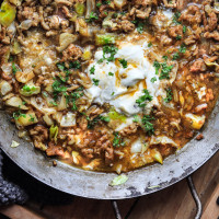 Alles 10 Min köcheln lassen und mit Natur Joghurt oder veganer Sour Cream, sowie frischer Petersilie abschmecken